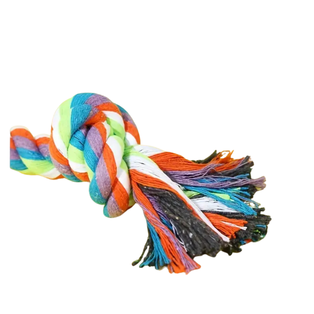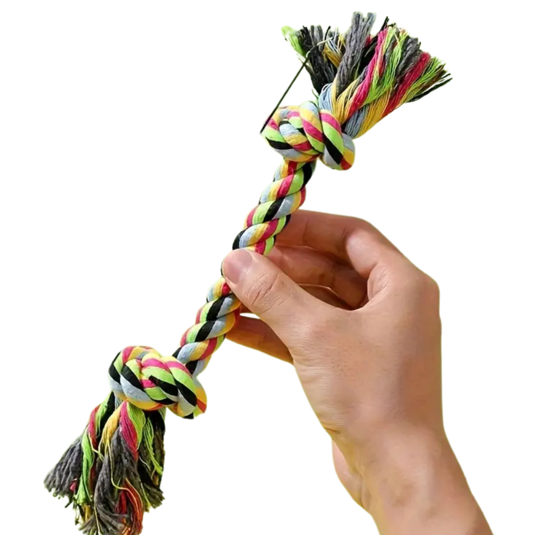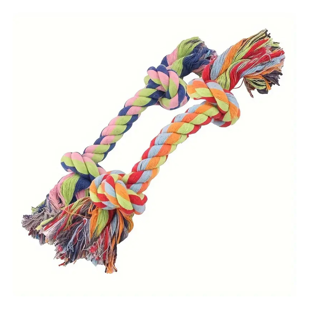 Ideal para mordidas agresivas, juegos de tira y afloja y limpieza dental. Fabricado con mezcla de algodón duradero, este juguete es perfecto para mantener a tu perrito activo, entretenido y con dientes saludables. ¡Diversión garantizada en cada tirón!